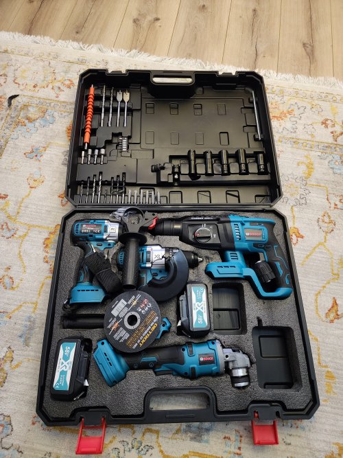 | Aksesuarlar : | 1 adet makine kutusu, 1 adet somun sıkma , 1 adet taşlama , 1 adet hilti, 1 adet vidalama matkap, 3 adet batarya , 1 adet şarj cihazı , Ek Parçalar |